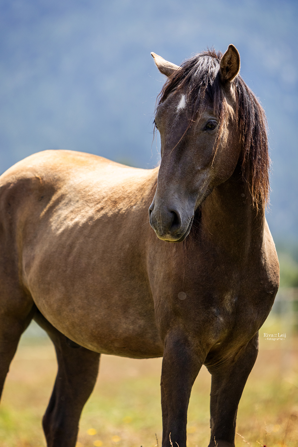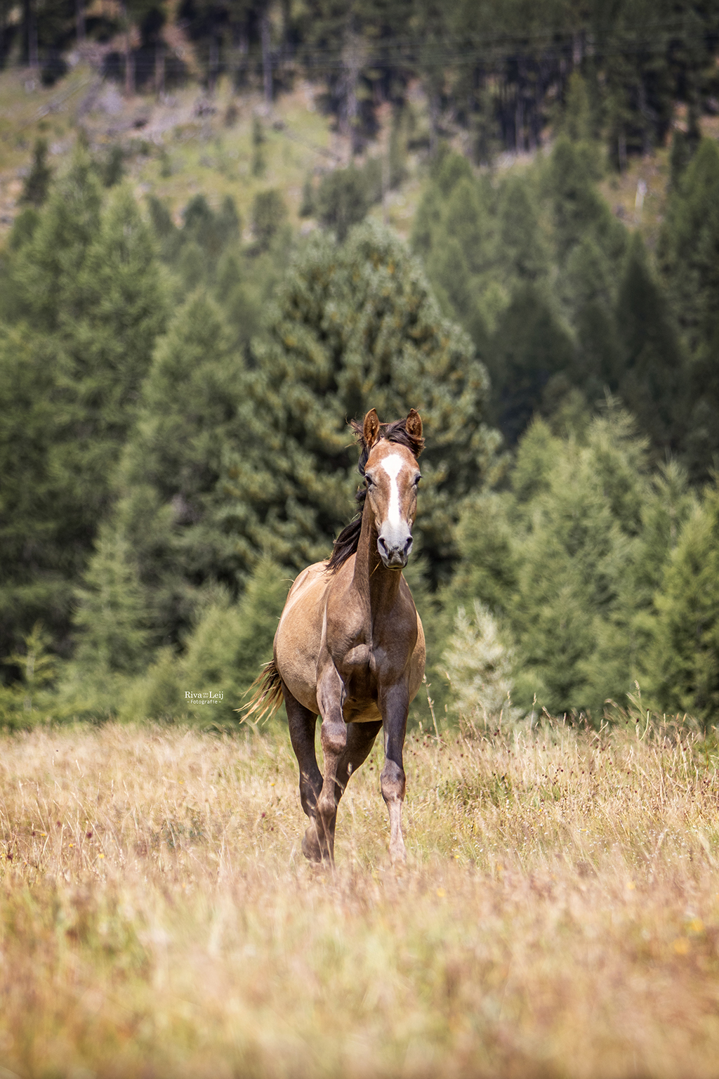 Masuda al Canton (die Freudige), geboren 2023, Tochter von Amal al Canton und Sileh. Als erstes fällt vielleicht ihre spezielle Zeichnung und Farbe auf, doch interessanter ist ihre Kraft, ihre Bewegungsfreude, ihre Balance und ihr Schwung. Sie hat eine ordentliche Grösse und steht auf einem stabilen Fundament. Ihr stehen alle reiterlichen Disziplinen inklusive Springen offen. Wegen ihrer Abstammung kann sie zu einem späteren Zeitpunkt auch in der Zucht interessant sein.