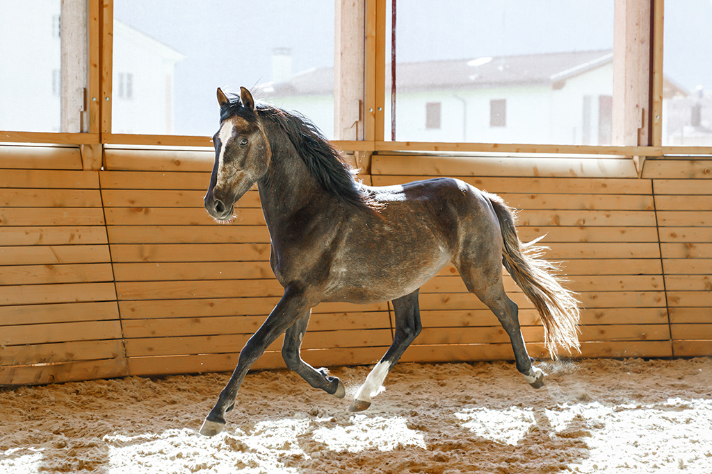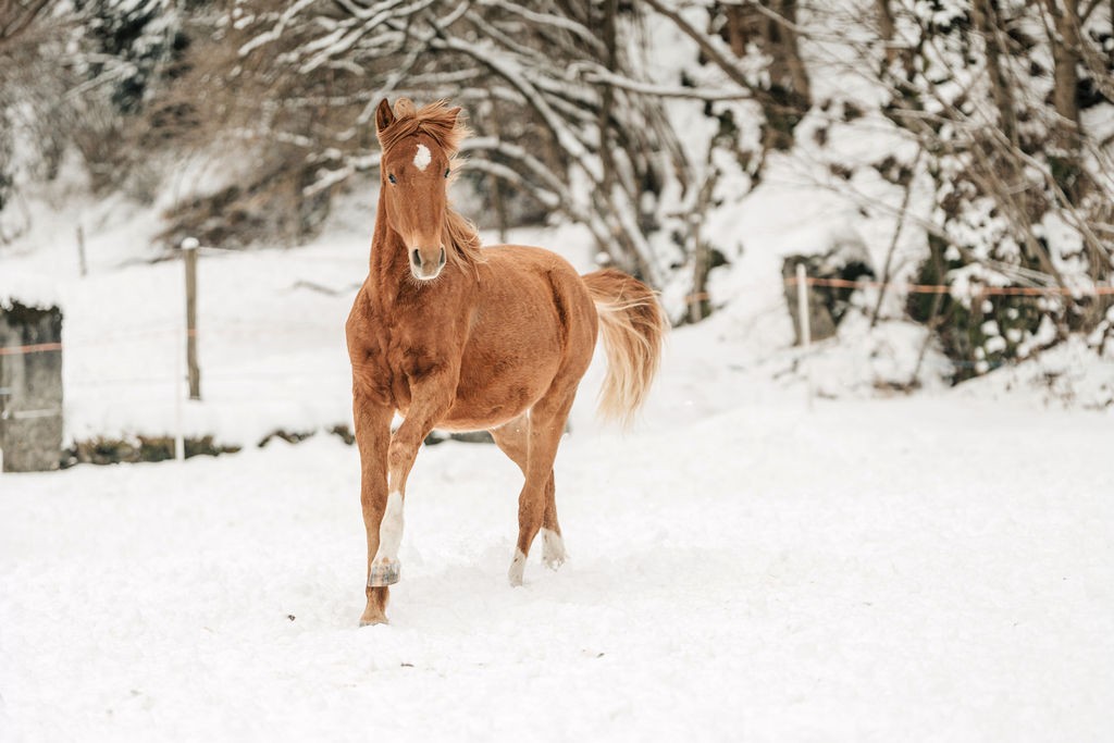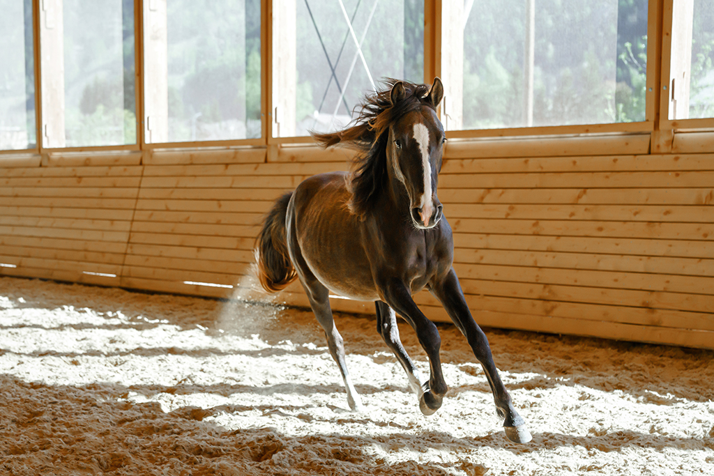 Mehdi al Canton (geschützt und geleitet), geboren 2023, Sohn von Sherizane al Mansour und Nihili Chaouchaoua. Grossrahmiger, gut gebauter, kräftiger Junghengst mit dynamischen Bewegungen. Im Wesen ausgeglichen und freundlich. Kann ein sportliches Geländepferd werden, ist aber auch für Reitkunst und vielseitige Reiterei geeignet.